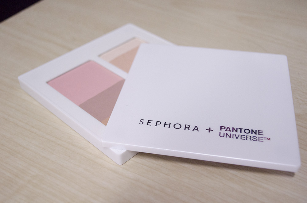The Alchemy of Color Face Palette includes two sides of pans that are separated into three mini pans. One side has a blush/bronzer theme, and the other is made up of highlighter-y products. There is a “Get the Look” video by Sephora that’s still up: Sephora + Pantone Universe Alchemy of Color Face Palette: Chiseled Bronze