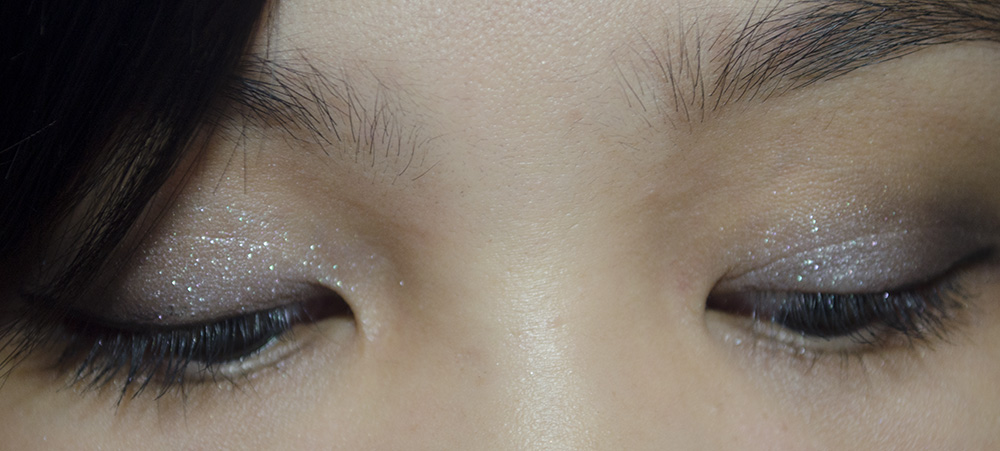 I used the NYX Jumbo Eye Pencil in Pacific on my lids. It’s a cool blue color, and I have no idea why I have it/why I used it, but I think it turned out to be a pretty look. Pink Champagne was patted all over the inner 2/3 of the lid, and I used Addiction e/s in Truffle on the outer 1/3 to anchor everything down and a bit of Le Métier de Beauté e/s in Tamarack to blend out the harsh edges by the crease.