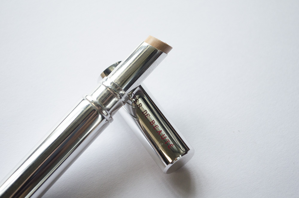 The Peau Vierge Correcteur~ comes in a twist-up form, and I’ve come to expect a drier consistency from concealers that resemble lipsticks. However, that’s not the case here. The product goes on smoothly, even more so when you apply it using your fingers, instead of straight from the tube. Despite its creaminess, it still keeps its solid shape.