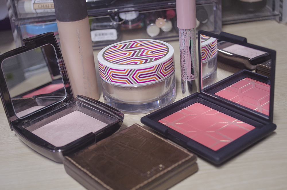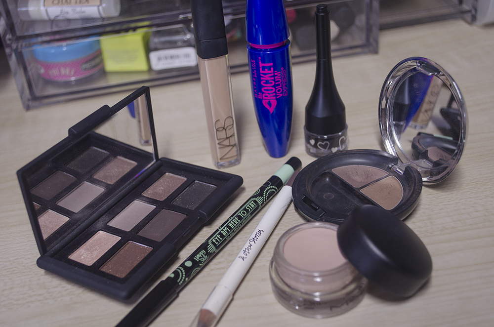 What I Wore: Hourglass Veil Mineral Primer, NARS Radiant Creamy Concealer (Ginger), bareMinerals Original Foundation (Medium Beige), BECCA Shimmering Skin Perfector (Opal), Hourglass Ambient Lighting Powder (Mood Light), & Other Stories Eyebrow Pencil (Bouclé Greige), The Body Shop Brow & Liner Kit (02), MAC Paint Pot (Painterly), NARS And God Created the Woman Palette, Sasa Perfect Shape Gel Eyeliner (01 Velvet Black), Happy Skin Eye Am Here to Stay Gel Liner (Peppermint), Maybelline The Rocket Mascara*, NARS x Pierre Hardy Blush (Boys Don’t Cry), Tarte Amazonian Clay Matte & Waterproof Bronzer (Park Avenue Princess), Happy Skin Shut Up & Kiss MeMoisturizing Lippie (The Morning After)
