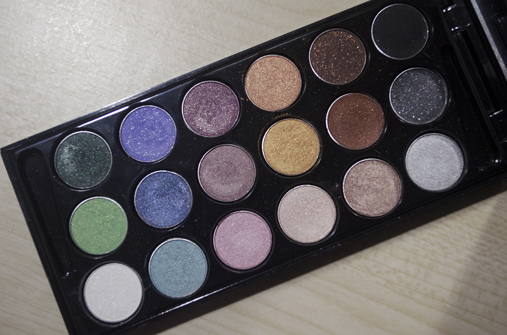 I’ll start with the LE palette that I did hound: The Mélange de Colour Fashion Eye Palette. To date, this is, I think, their biggest palette release with 18 shades in really tiny pans. The shadows are (mostly) so creamy, though.