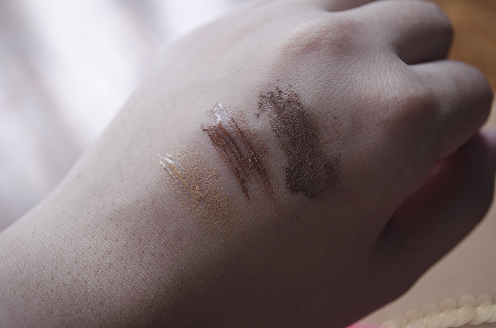Maybelline Fashion Brow 24H Coloring Mascara - Swatches - 1 Yellow Brown, 3 Rusty Brown, 5 Dark Brown