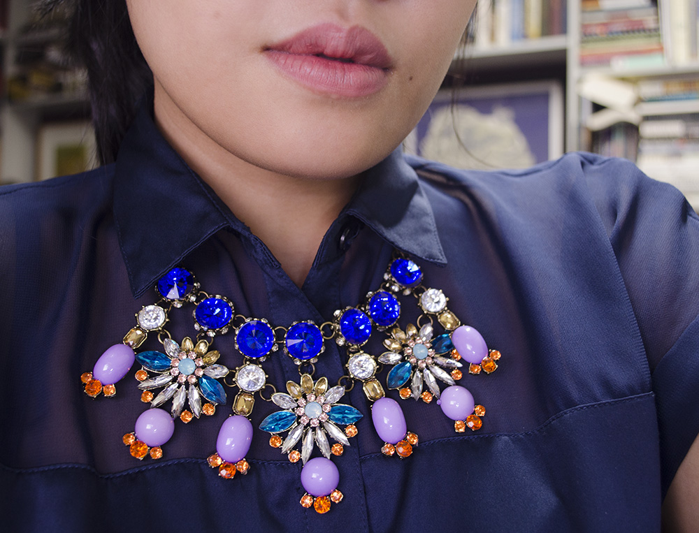 Statement necklaces confuse me, too; I can’t figure out how to wear mine during the day. I’ve seen bloggers throw on big sparkly necklaces with T-shirts and jeans, but it looks so weird and overdone when I do it.