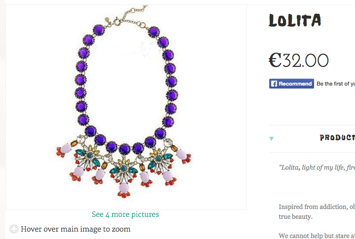 They’re cute, though. I like this one called Lolita a lot, but again… not sure how/where to wear it. I usually wear small necklaces, but they’re way more expensive than these ones. Anyway. I found out that Betty and Biddy don’t actually make their jewelry, they just source the pieces (confirmed here) and that upset me so much, just because I thought I was supporting a small business. I guess I can liken it to buying cosmetics from an indie company only to find out that they just repackaged the colors that they can get wholesale.