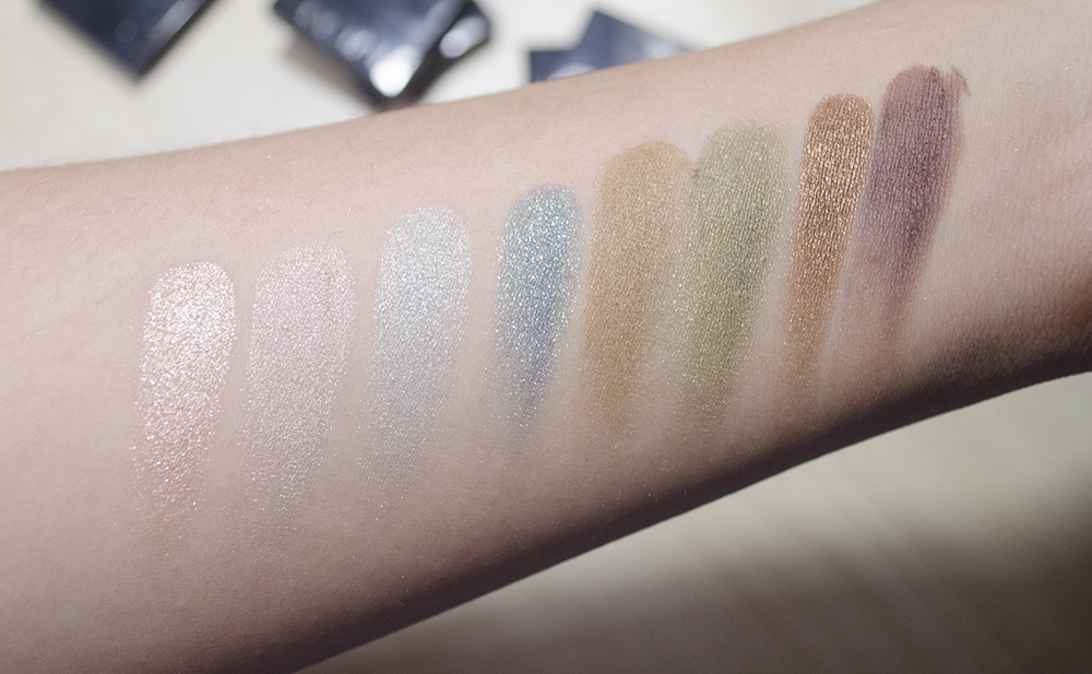 Swatched, L-R: Rigoletto, Sandbar, Midnight Drive, Deep Forest, Sand Dune, Safari Mode, Fudge, Truffle