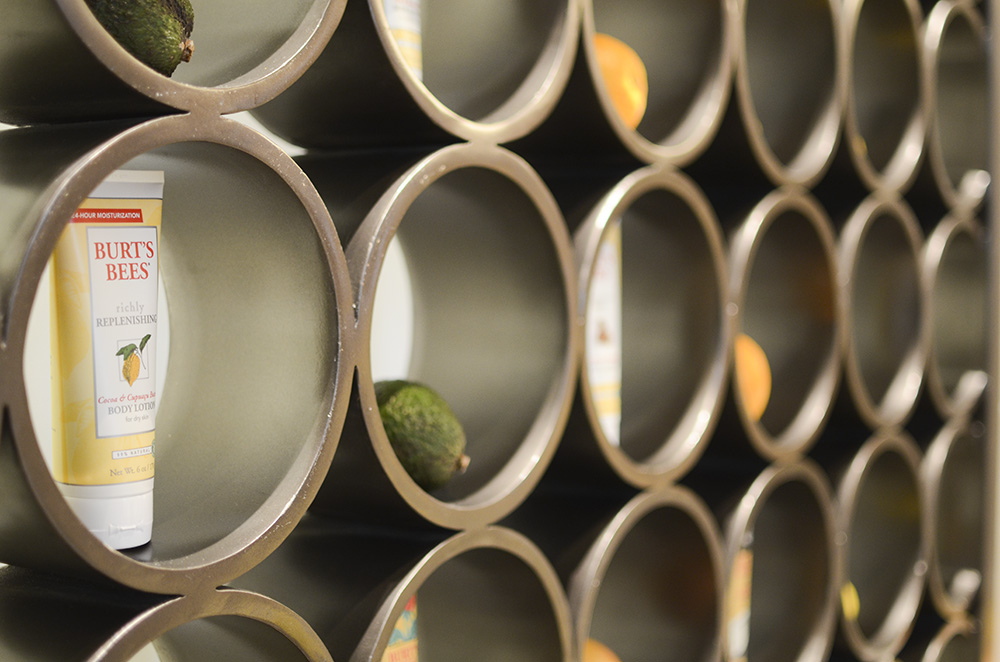 The ‘0’ is made of beeswax and the sign was spelled out with ingredients they use to make Burt’s Bees products.