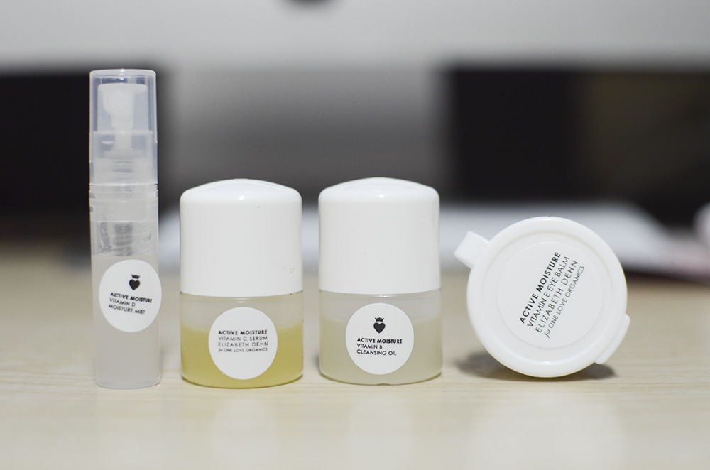 This sample pack contains 4 sample-sized items from the Elizabeth Dehn collaboration with One Love Organics, which is a line that advocates “active moisture!” This pack includes single use samples of Active Moisture Vitamin C Serum, Vitamin E Eye Balm, Vitamin B Cleansing Oil & Makeup Remover and Vitamin D Time Release Facial Mist.