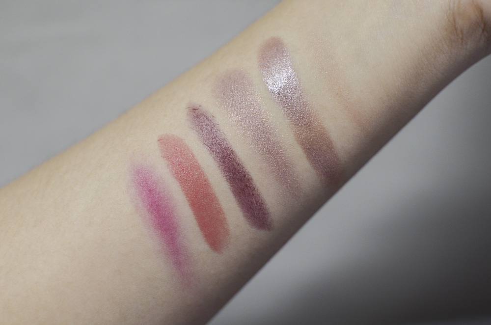 Swatched, L-R: Tarte Flush, Addiction Revenge, Addiction Suspicious, NARS Sin, Kjaer Weis Abundance