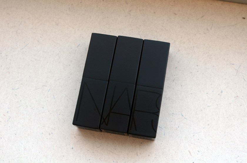 Another Wes Week interlude: a quick look at the NARS Audacious Lipstick, of which I got two shades. (The other one pictured here, Janet, is my sister’s!) The ones I got, Dominique and Julie are Barneys exclusives (dunno what that means, as the shades are described as permanent in the range).