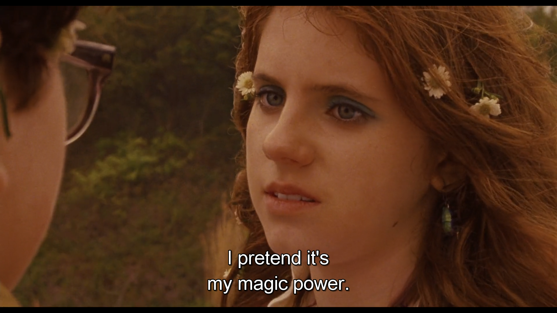 For the third look, there’s the blue eyeshadow on Rita in The Darjeeling Limited on and Suzy in Moonrise Kingdom. Anderson actually had Kara Hayward apply her own makeup so that it felt like a child’s hand.