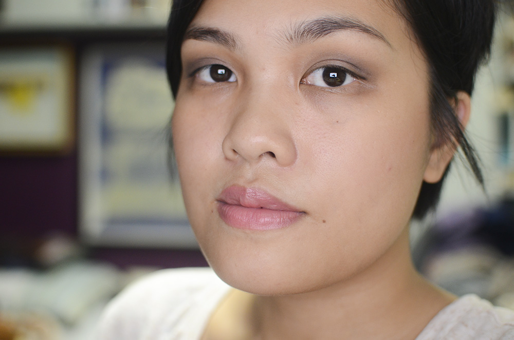 OK, I think I went a little too dark on my “natural eye definition,” but the intent was there. Just get a matte brown that’s just a bit darker than your skin tone and work it all over your lid and crease. Smudge a kohl on the outer corners, subtly. I used a deliberately bushy eyebrow technique, a red jelly blush (very sheer) and an MLBB, though I think a stain could work. Work with what you’ve got, basically!