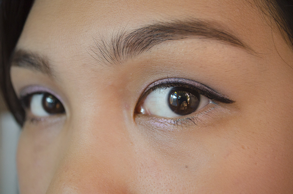 I used a Makeup Geek Pigment called Sweet Dreams on my lid, with bareMinerals Velvet Mauve in the crease and bareMinerals Yoga as a liner.