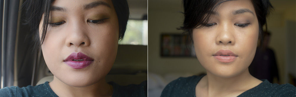 Next up: the lipsticks! I have three shades: Funnel of Love, which has been a favorite natural nude, Femme Fatale, a pretty muted red, and Ink Pot, which is a color that I wouldn’t usually get—violet. I love the formulation of the lipsticks: just enough pigmentation with smooth application, a beautiful selection of colors, and a semi-matte finish.