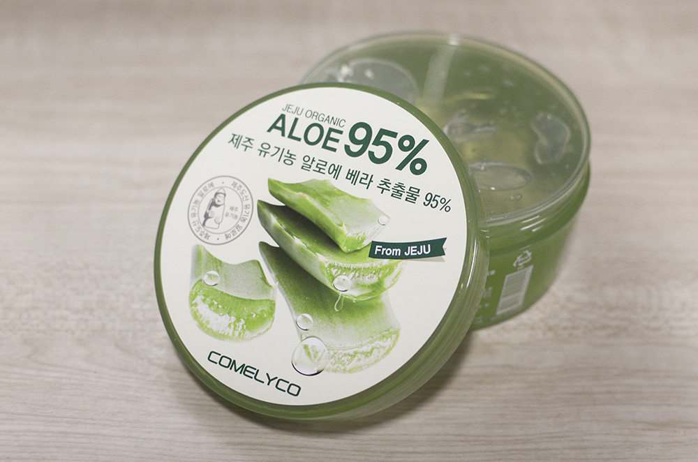 The Comelyco Jeju Organic 95% Aloe Gel is one of the many iterations of aloe gel out in the Korean market, but it also has a very high concentration of aloe with only 5% of it made from other ingredients. (The Nature Republic aloe gel I have is only made of 92%.)