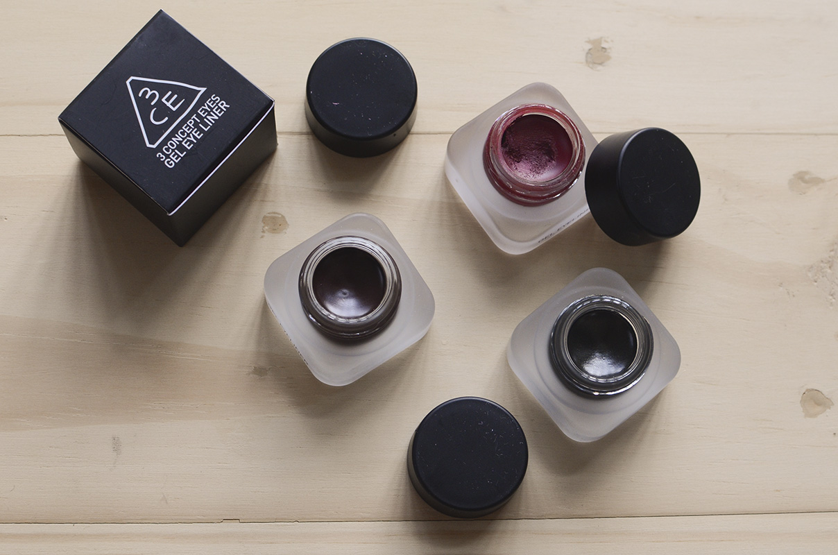 Hey, all! I thought I’d surprise you guys with a post dipping into my Korea shappeeeen disaster haul starting with these beautiful gel liners from Stylenanda’s cosmetics arm, 3CE or 3 Concept Eyes.