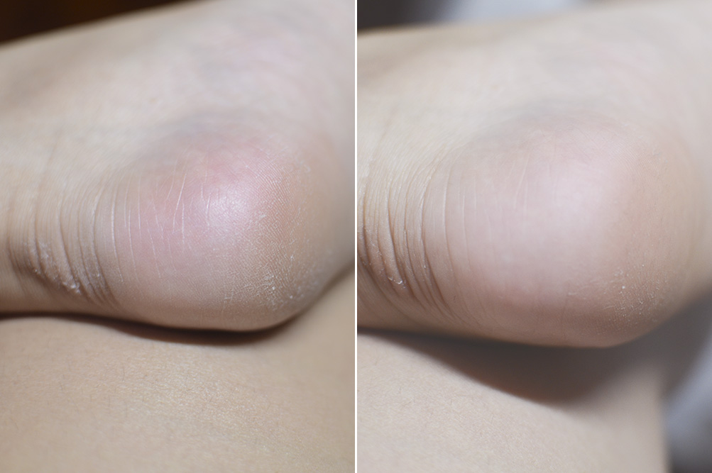 The oil absorbs into the skin really quickly and provides a decent amount of moisture without leaving the skin uncomfortably greasy. My limbs aren’t exactly Sahara desert level dry, so I chose to “test” it on my heels, which haven’t recovered from the dry climate yet: