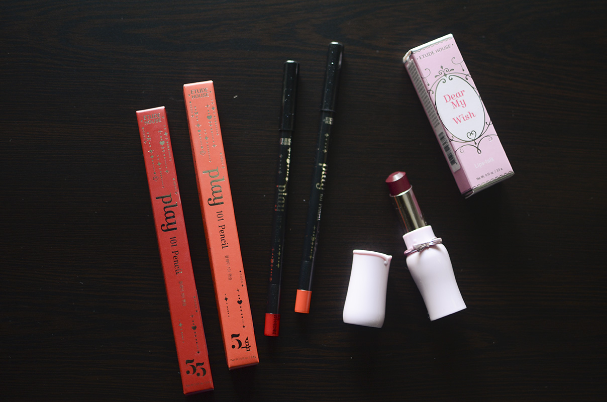Etude House - Play 101 Pencil in 54 and 55, Dear My Wish Lipstick in RD302