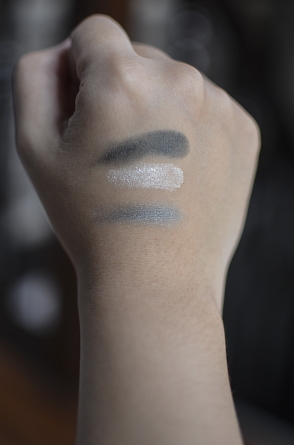 Blended together, you get a silver shade that has a slight green undertone. I’m looking forward to wearing this cool color combo some time in the next days, instead of the warm golds and reds that I gravitate to when it comes to the Christmas season. I’ll post a look up when I do. 🙂