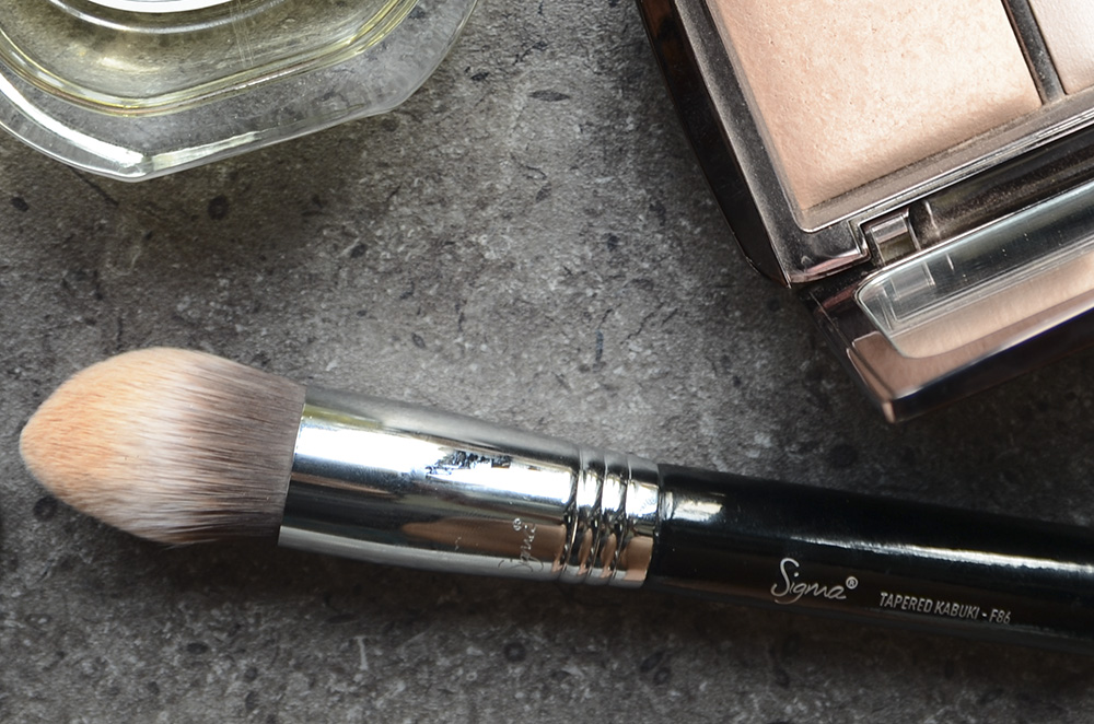 The bronzer looks stripey in the first two photos, but I think it looks quite nice here. Just me? The rest of the products will be listed down below. I did want to talk a bit about the brush I’ve been using for foundation application: the Sigma Tapered Kabuki – F86 Brush** which looks like this: