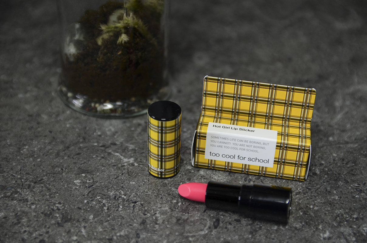 I love the plaid tube and packaging! So cute. And now I sort of wish there were actual stickers for your lips. Maybe those Glossier ones would do the trick…