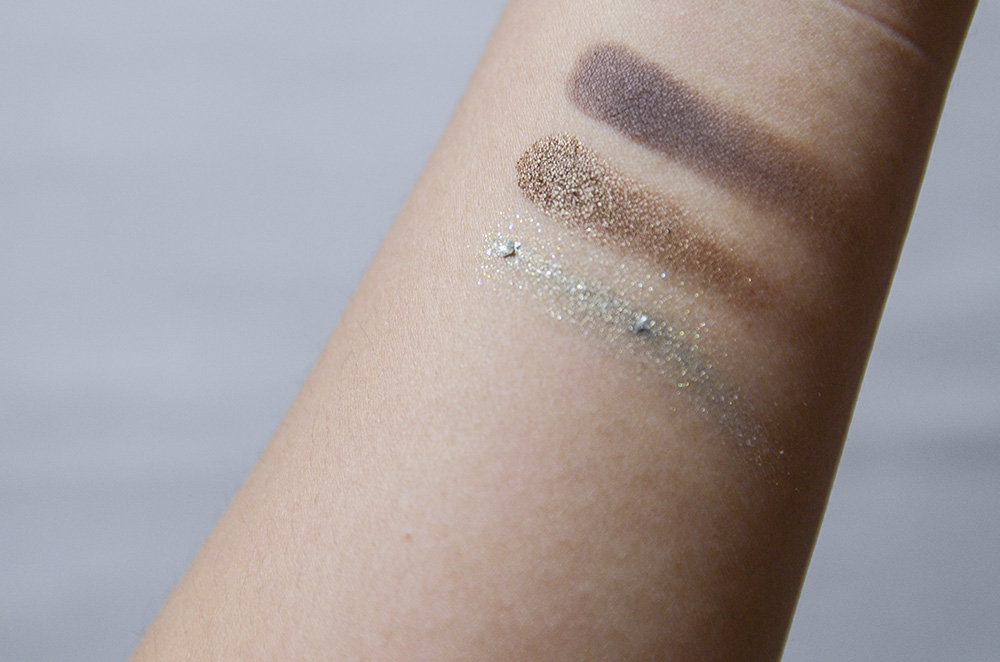 Swatched, top to bottom: MAKE Khaki*, Rouge Bunny Rouge Abyssinian Catbird, ColourPop Sleigh