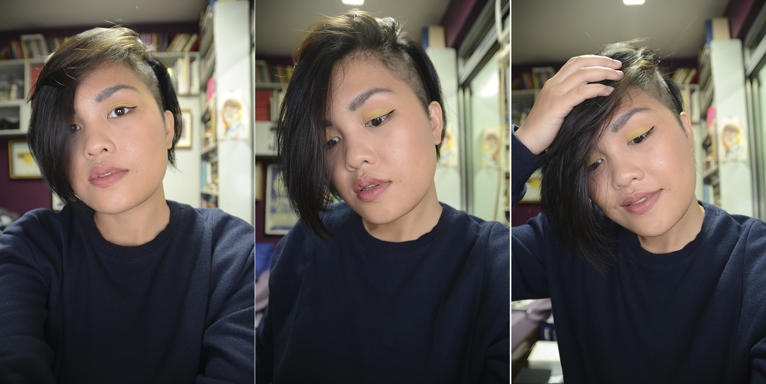 Everything looks great! The yellow shadow! The undercut! Blog sale?