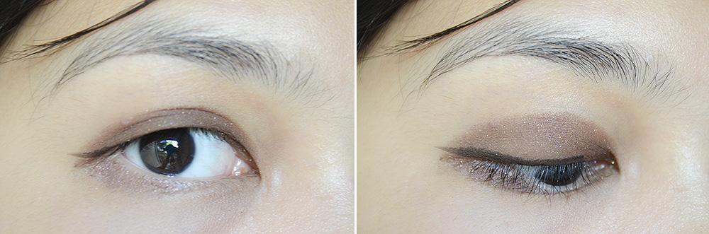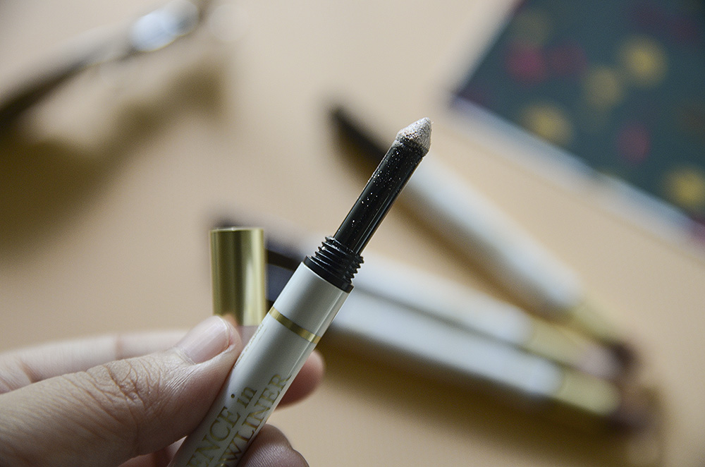 I received four colors: the eyeliner in black and varying depths of brown, and shimmery neutral eyeshadow shades.