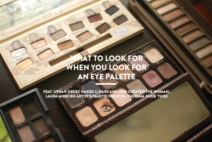 If you’re on a tight budget and looking for an eye palette to meet most, if not all, of your needs, here are a few tips I can share with you. I’ll be basing it off of my Basic Eye Diagram & Go-To Eyeshadow Technique, and the premise that you are looking for a palette to use for everyday. I’ll be demonstrating this using the Urban Decay Naked 2 ($50), NARS And God Created the Woman ($65 for a set), Laura Mercier’s Artist Palette for Eyes (LE), and theBalm’s Nude ‘Tude ($36), under the assumption that you want a more or less neutral palette. I chose all of these palettes because they are either still available/permanent, or they’re LE palettes that have shades that are mostly permanent. BASE COLOR The base color is what you would put all over your mobile eye lid (area under the crease). Usually it’s a light to midtone color, but obviously you can go darker for night/smokier/sultrier looks. I split the swatches into three photos since they wouldn’t fit on …
